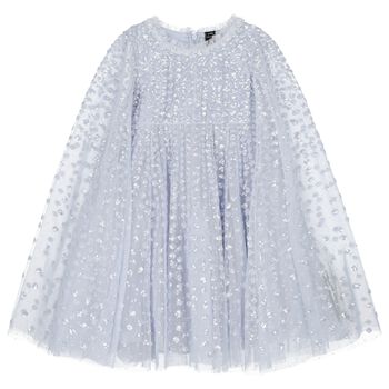 Girls Beige Sequinned Tulle Cape Dress Girls Beige Sequinned Tulle Cape Dress Quick Add